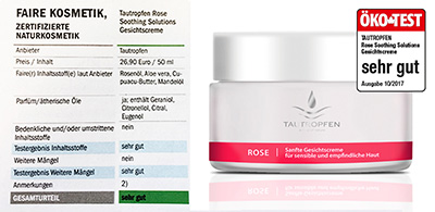 In the latest edition of ÖKÖ-TEST magazine (issue 10/2017), the Rose Soothing Solutions Gentle Facial Cream has been rated VERY GOOD.